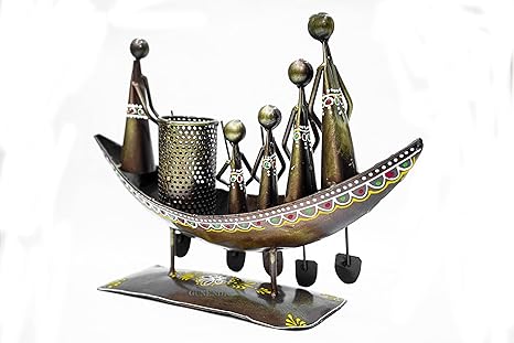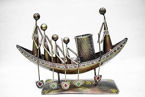| Add creativity and elegance to your workspace with this 5 Man in Boat Pen Holder Cum Showpiece, a perfect blend of art and functionality. Expertly handcrafted from rust-free metal, this artistic desk accessory features five figurines rowing a boat — symbolizing teamwork, balance, and direction.
